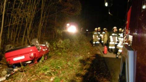 GAFLENZ: Aufgrund unbekannter Ursache kam ein PKW von der Fahrbahn ab und steckte schräg im Straßengraben.