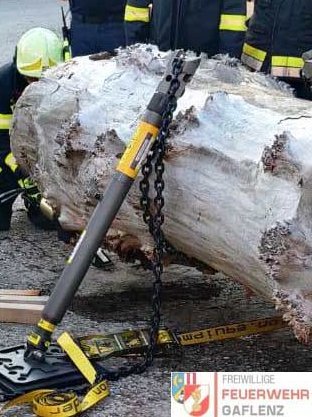 Szenario 1 war ein Arbeitsunfall in einem holzverarbeitendem Betrieb, wobei eine Person unter einem Baumstamm eingeklemmt war.