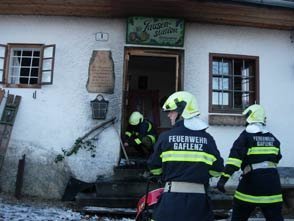 GAFLENZ: Dem richtigen Handeln von zwei Feuerwehrkameraden sowie dem Einsatz von drei Feuerwehren ist es zu verdanken, dass ein Brand im Eingangsbereich der GaststĂ€tte am Heiligenstein rasch gelöscht werden konnte und so fĂŒr das Wahrzeichen von Gaflenz sowie der GaststĂ€tte keine Gefahr bestand bzw. nur geringer Sachschaden entstand.