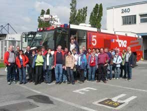Abfahrt war um 06.00Uhr morgens. Es ging mit dem Bus nach Schwechat, wo uns das erste Ziel, der Flughafen, erwartete. Dort fand eine Führung am gesamten Flughafengelände statt. Natürlich durfte auch ein Stopp bei der Flughafen-Betriebsfeuerwehr nicht fehlen. Bei diesem wurde die Hauptwache genau unter die Lupe genommen. Nach einer kurzen Erklärung des Allgemeinen Feuerwehrwesens am Flughafen war natürlich die Besichtigung des neuen Flughafenlöschfahrzeugs (FLF12.000 der Firma Ziegler) das Hauptziel.
