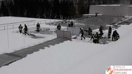 Einer erneut in den Bezirk Kirchdorf, ein zweiter in die benachbarte Steiermark nach Altenmarkt. Einsatzkräfte von 16 Feuerwehren des Abschnittes Weyer, darunter die FF Gaflenz, befreiten dort ein Firmenflachdach von der Schneelast. Eine Fläche von 7.000m² konnte von den Einsatzkräften unter teils widrigsten Wetterbedingungen entsprechend entlastet werden.