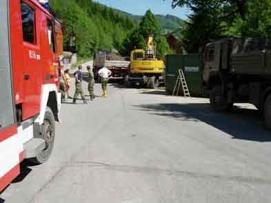 GROSSRAMNG/LAUSSA: Nachdem die FF Gaflenz bereits am 24.05.2005 ihre Hilfe bei den Aufräumarbeiten angeboten hatte, wurde sie zur Hilfeleistung am 26.05.2005 gerufen.