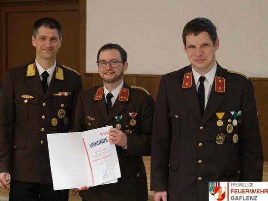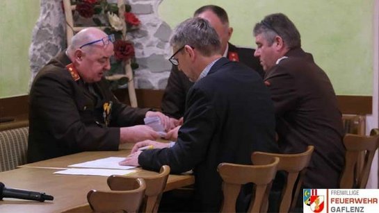 Die scheidenden Kommandomitglieder wurden schließlich ebenfalls als Dank für ihre Leistungen befördert und mit Ehrungen ausgezeichnet, darunter die Ernennung von Anton Nagler zum Ehren-Amtswalter, nach fünfzehnjähriger Tätigkeit als Kassenführer der FF Gaflenz.