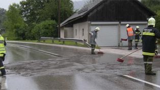 GAFLENZ: "Ölaustritt auf der B121", so lautete der Einsatzauftrag von Florian LFK. Als die Einsatzkräfte am Einsatzort eintrafen, war der Klein LKW bereits abgeschleppt, jedoch die komplette Fahrbahn mit einer wie Treibstoff schimmernden Flüssigkeit bedeckt.