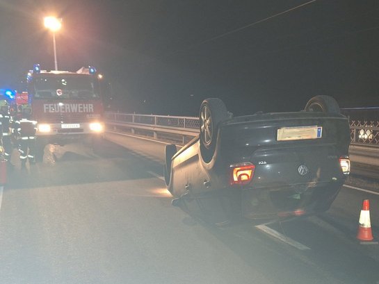 Bereits bei der Anfahrt mussten sich die Einsatzkräfte durch den Rückstau kämpfen. Bei der Ankunft des Löschfahrzeugs war die Lenkerin schon außerhalb des am Dach liegenden Fahrzeugs, das beide Fahrbahnen blockierte.