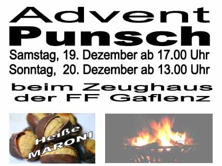 Am vierten Adventwochenende, dem 19. und 20. Dezember 2009, wurden die Besucher mit Punsch, Glühmost, Tee, Maroni, usw... in vorweihnachtliche Stimmung versetzt. Bei perfektem Wetter, samstags leichter Schneefall und sonntags Sonnenschein, kamen Jung und Alt um sich mit den wärmenden Getränken zu stärken.