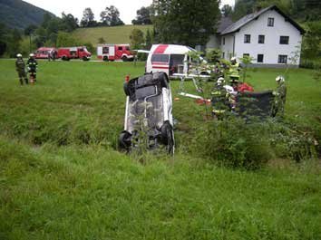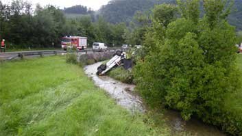 Umgehend rückte das LFB-A2 der FF Gaflenz zur Einsatzstelle aus. Wenig später folgten das TLF sowie das KDO. An der Einsatzstelle angekommen, konnte der Gkdt des LFB-A2 folgende Lage erkunden: Der PKW lag am Dach im Gaflenzbach. Der Lenker war aus dem schwer beschädigten Fahrzeug befreit worden und wurde bereits vom Roten Kreuz Weyer erstversorgt. Die Arbeiten beschränkten sich somit auf das Absichern der Einsatzstelle, die Unterstützung des Roten Kreuzes bei der Verletztenversorgung sowie auf das Errichten einer Ölsperre im Gaflenzbach. Vom TLF wurde der Brandschutz sichergestellt. Die ebenfalls alarmierte FF Weyer konnte nach kurzer Zeit wieder ins Zeughaus einrücken. Nachdem auch der NAW Waidhofen/Ybbs an der Einsatzstelle eingetroffen war und den Verletzten übernahm, konnte die FF Gaflenz mit der Bergung des PKW´s beginnen. Diese wurde mit der Einbauseilwinde durchgeführt. Den PKW entfernte anschließend ein Privatunternehmen. Das Unfallopfer wurde mit Verletzungen unbestimmten Grades vom NAW ins Krankenhaus Waidhofen/Ybbs eingeliefert.