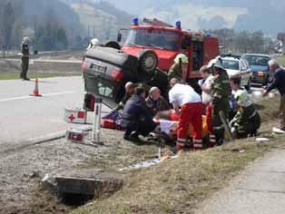GAFLENZ: Montag, um Punkt 12.00 Uhr Mittag, wurden die Feuerwehren Gaflenz und Weyer zu einem Verkehrsunfall mit eingeklemmter Person auf der B121 in Oberland gerufen.