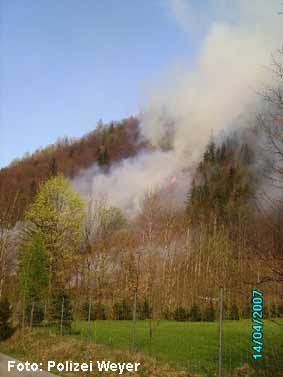 WEYER: Zu einem Großeinsatz entwickelte sich ein Waldbrand in Weyer am Samstagnachmittag. Um 15:50 Uhr wurden die Feuerwehren Weyer und Kleinreifling alarmiert.