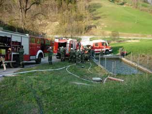 Im Einsatz: 39 Mann mit KDO, TLF, LFB-A2 sowie insgesamt 13 FF aus OÖ, NÖ und Stmk