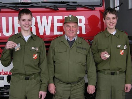 Die Jugendfeuerwehrmänner Furtner Dominik, Großberger Andreas, Hinteramskogler Martin, Hödl Alexander, Kaltenbrunner Severin, Leichtfried Dominik, Leichtfried Michael, Rettensteiner Simon, Riedler Thomas und Weißensteiner Oliver traten in Silber an und Hinteramskogler Gerald und Kopf David belegten die Stufe Gold. Wie bei der vorangegangenen Erprobung bestanden auch dieses Mal alle Teilnehmer die Prüfung und konnten stolz die erworbenen Abzeichen in Empfang nehmen!