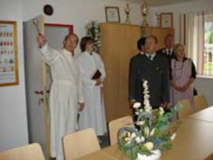Am Samstag fand die offizielle Segnung statt, leider bei absolut schlechten Wetterbedingungen. So musste die Feier im Festzelt stattfinden. Dabei waren neben Bürgermeister Günter Kellnreitner auch Vertreter der OÖ Landesregierung sowie der Bezirksfeuerwehrkommandant Max Presenhuber und Abschnittsfeuerwehrkommandant Josef Hack anwesend. Weiters konnten Kameraden von 10 Feuerwehren begrüßt werden. Während der Eröffnung wurden Kameraden geehrt, die an den 4.500 Arbeitsstunden, die in Eigenleistung aufgebracht wurden, maßgeblich beteiligt waren. So erhielten die beiden absoluten „Spitzenreiter“, die Kameraden Franz Schweighuber und Johann Wöhrnschimmel, die goldene Bezirksmedaille überreicht. Kommandant Johann Garstenauer wurde für seine hervorragenden Leistungen mit dem OÖ Verdienstkreuz dritter Stufe ausgezeichnet. Die Kameraden Almberger Martin, Egger Anton, Hochpöchler Christoph und Kopf Reinhard erhielten die Bezirksmedaille in Bronze überreicht. Auch der Bürgermeister bedankte sich für die erbrachten Leistungen und überreichte Bleiner Eduard, Buder Reinhold, Egger Anton, Garstenauer Johann, Harreither Werner, Hochpöchler Christoph, Kopf Reinhard, Schweighuber Franz und Wöhrnschimmel Johann Essensgutscheine. In den Festreden wurde die Leistungen gewürdigt und die Ausführung des Zeughausbaus gelobt.