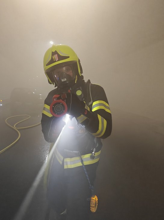 Der Rollcontainer ist mit modernsten Langzeitpressluftatmern (Twin-Pack AS) ausgestattet, die speziell für den Einsatz bei Bränden in Tunnelanlagen konzipiert sind. Neben den Atemschutzgeräten umfasst die Beladung auch Funkgeräte zur sicheren Kommunikation, Knickkopflampen für optimale Sicht im stark verrauchten Umfeld, sowie eine Wärmebildkamera zur Orientierung und Personensuche.